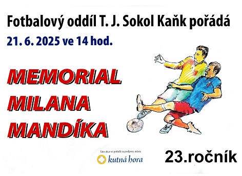 TJ Sokol Kaňk FO připravuje dvacátý druhý ročník Memoriálu Milana Mandíka klikněte.